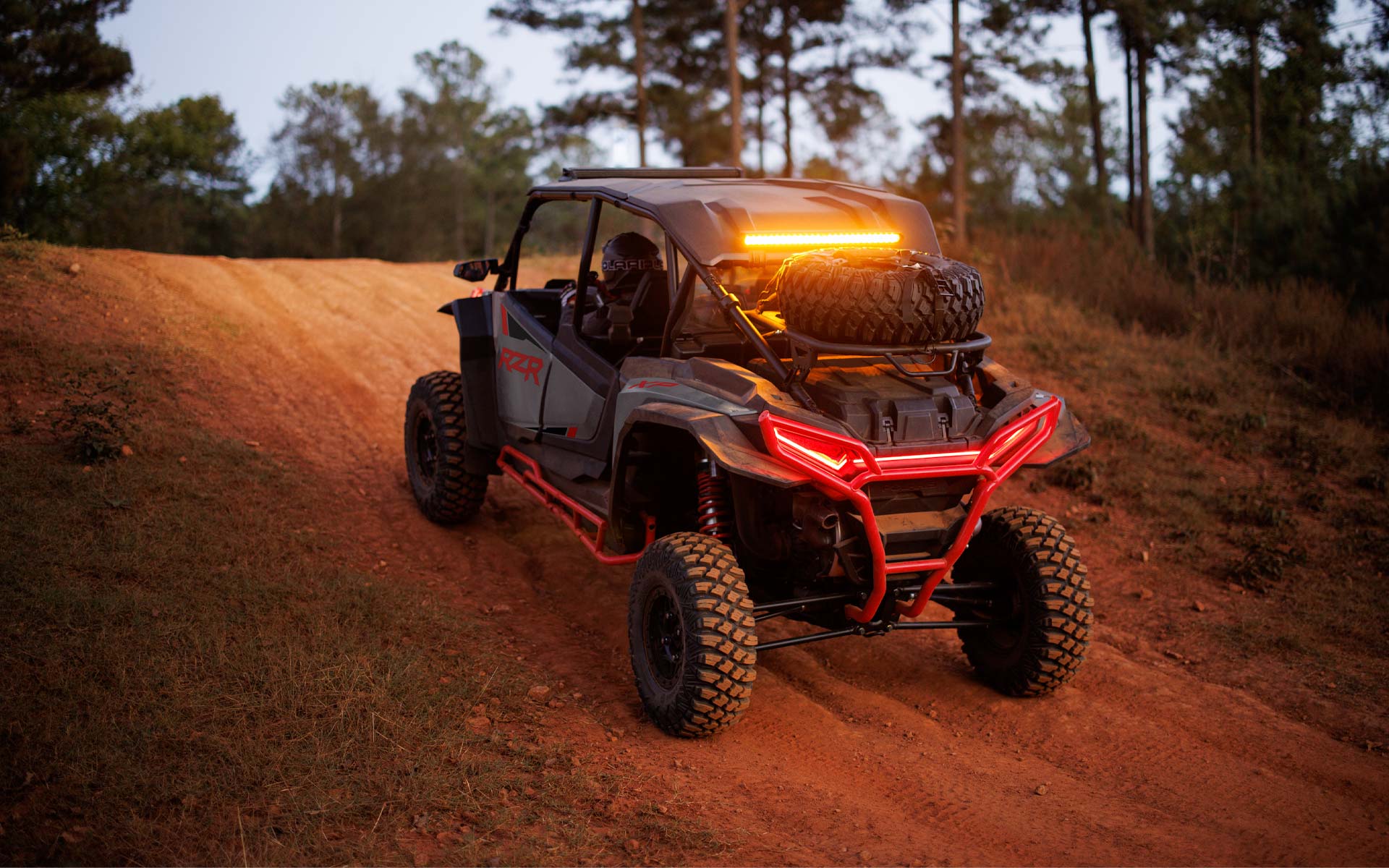 Du vil fortsette å kjøre og nyte tiden på stien mest mulig, så ingeniørene våre presset på for å designe en robust maskin som fortsetter å gå hardt sammen med deg. Vi fokuserte på holdbarhet, beskyttelse og å lage en RZR som er enkel å eie.